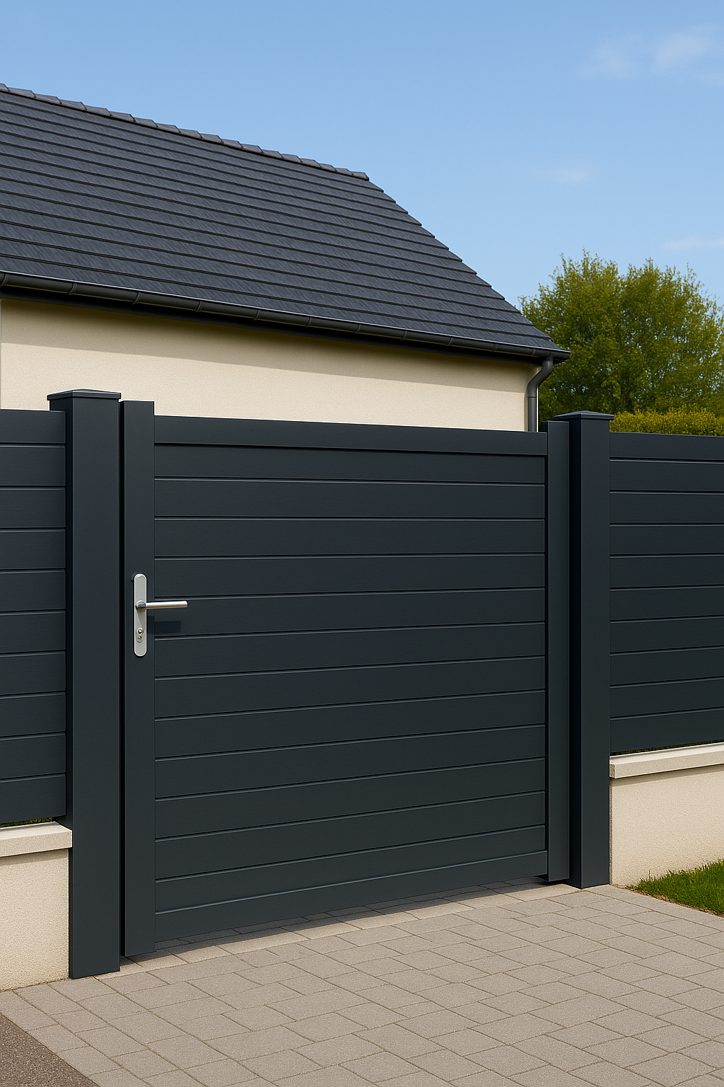Nos solutions sont disponibles dans plusieurs hauteurs, teintes et motifs, avec possibilité d’intégrer un portillon assorti ou une motorisation de portail pour plus de confort.