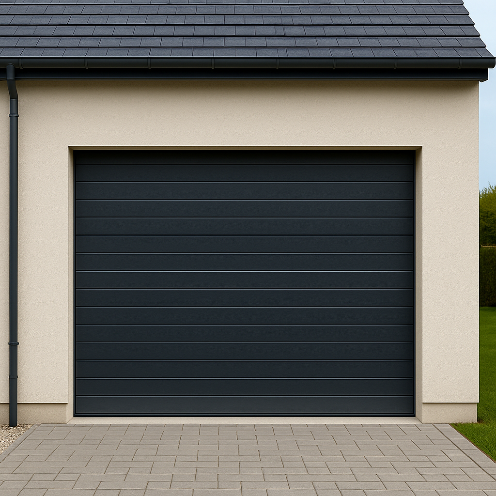 - Porte sectionnelle : la plus plébiscitée pour son isolation et son ouverture verticale sans débordement.